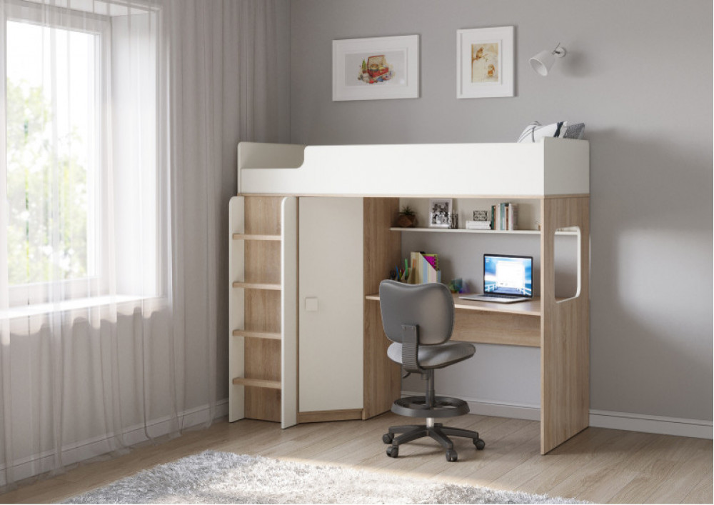 Учебная зона со столом под спальным местом открывает возможности для письменных работ,а также здесь удобно расположить ноутбук.